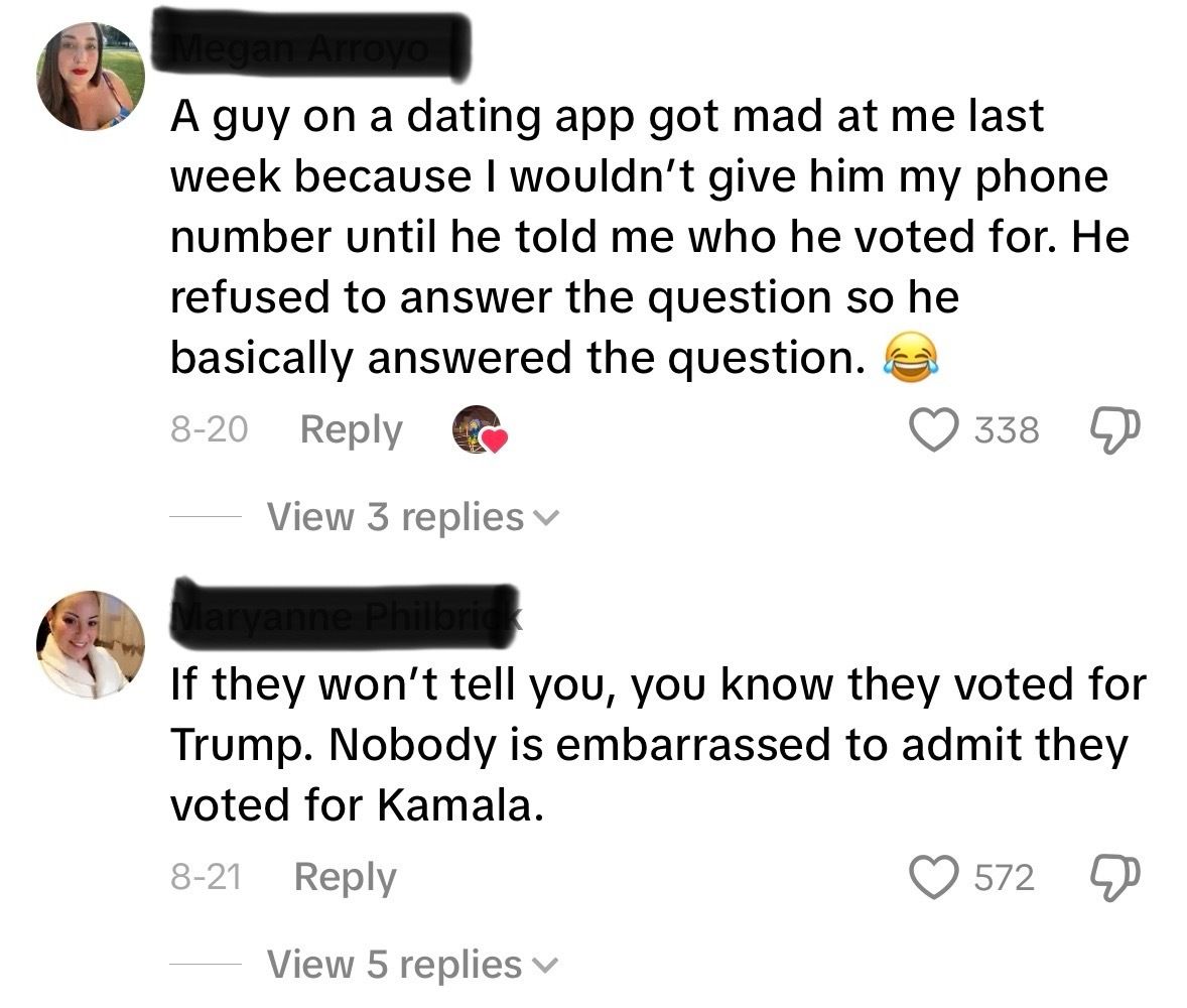 You may have answered each of these questions with a super easy yes or no (if so, congrats!). But if you didn’t, maybe it made you think about how a single word might not actually be enough to encompass all of someone’s values and priorities. If someone doesn’t include a political affiliation on their dating app profile, does it automatically mean that they are a die-hard MAGA supporter, as this comment section suggests?