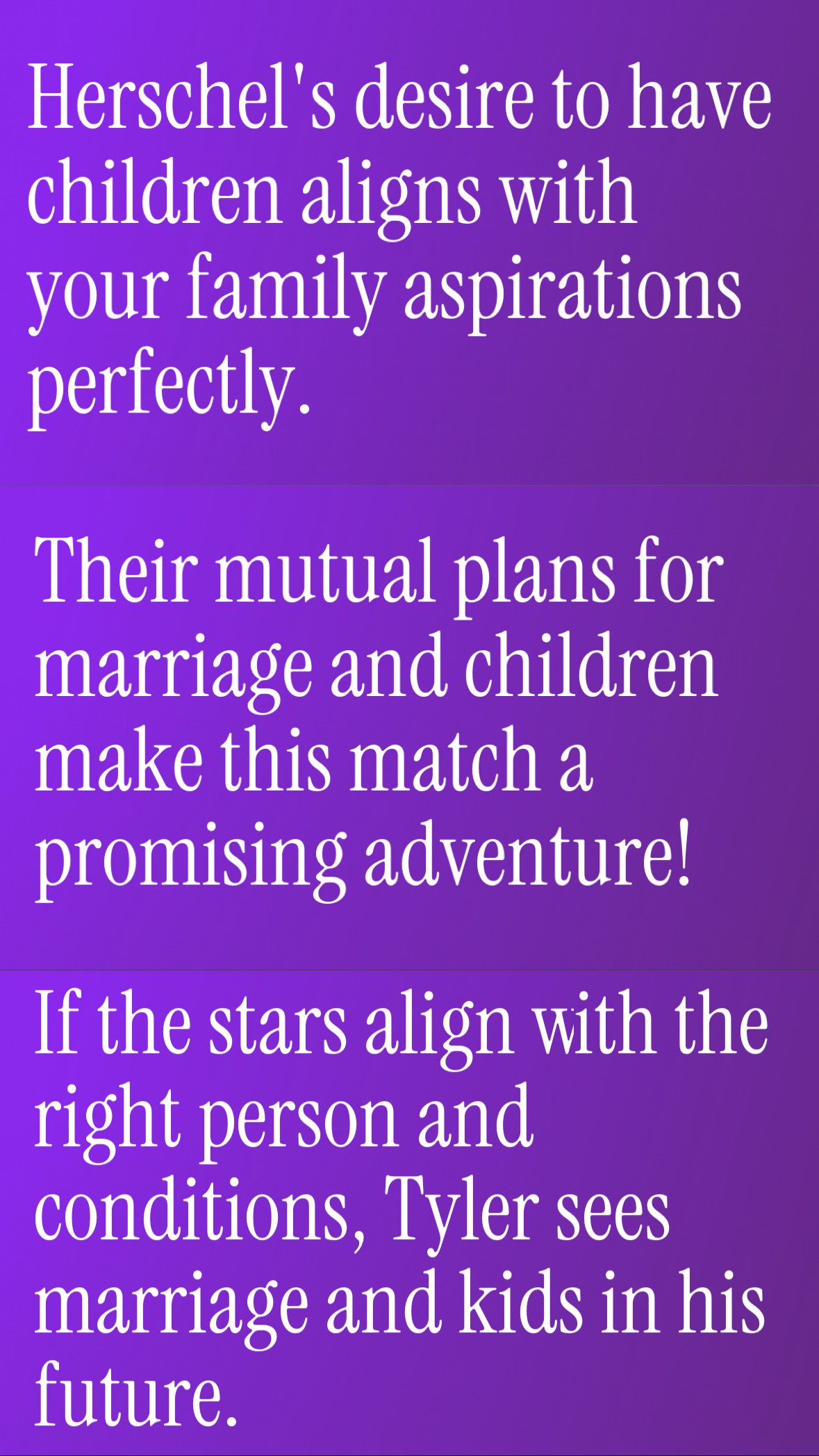 The only person who’s own answer seemed to align with mine is the third one (Tyler). But that’s not even really the problem. The issue is that for something that I clearly gave her a thoughtful, honest, and nuanced perspective on, she was unable to respond in kind. When matching me with men, Alexa only called out a handful of qualities to demonstrate that we might be a good fit. Why even call out family goals if that’s not something I highlighted or had an explicit answer for? I’ll tell you why. Because at the end of the day this AI, like so many others, is not capable of distilling truly complex qualities into anything particularly meaningful.
